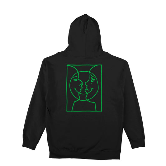 Krooked Moonsmile Raw Hoodie, black w/ green prints