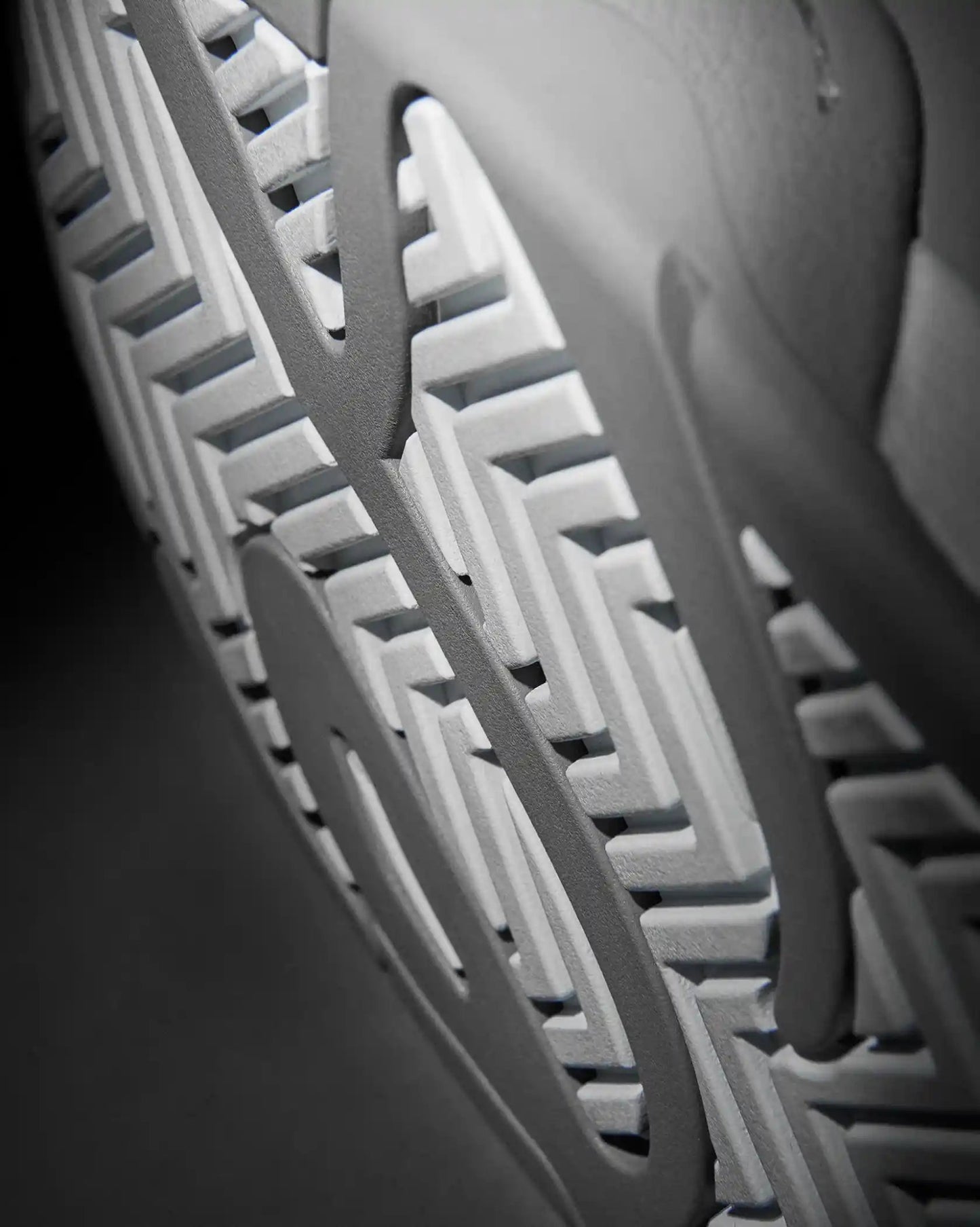 Molded PU cage over quarter and heel mesh for durability and support