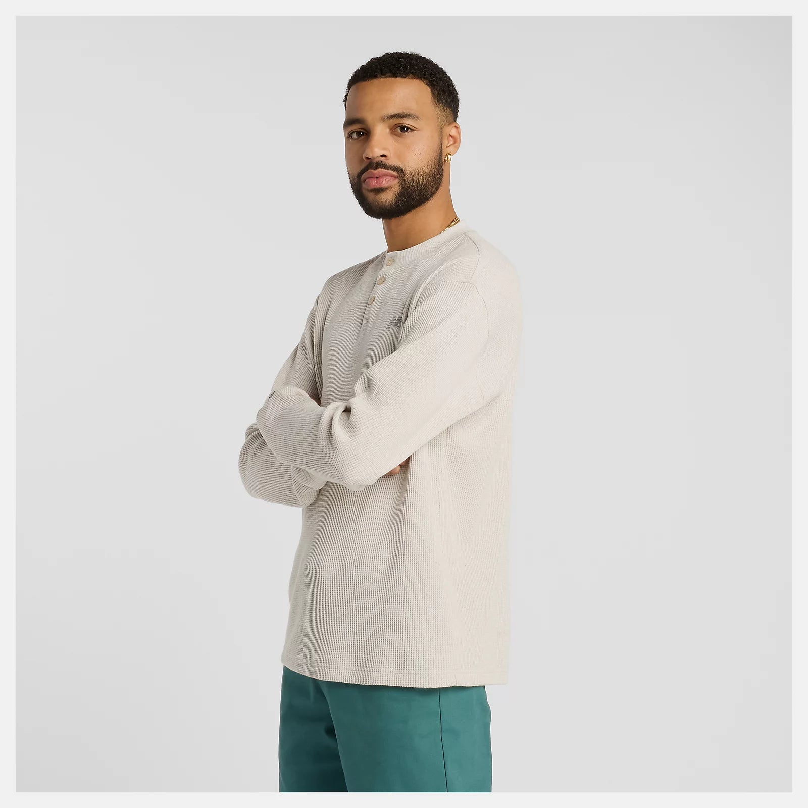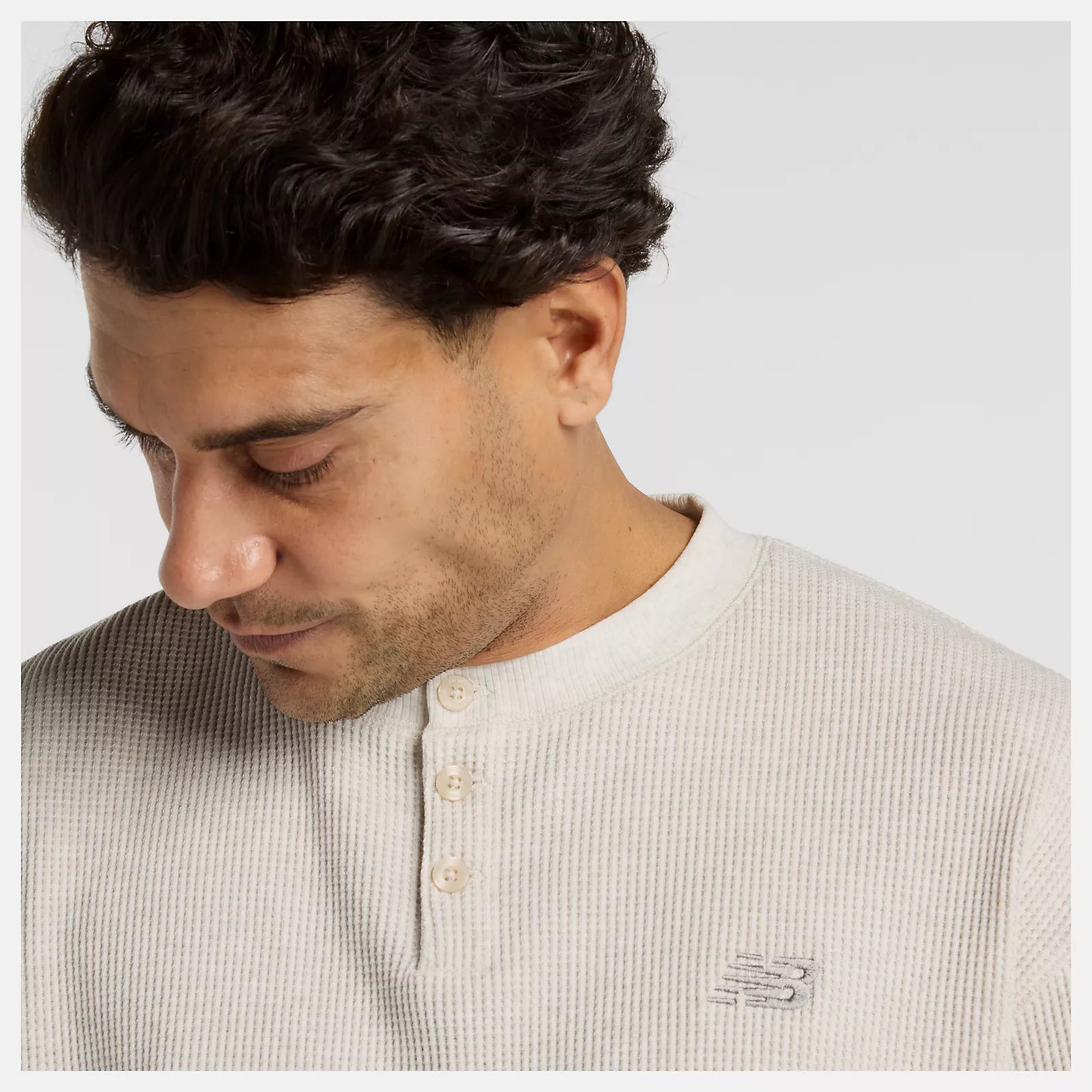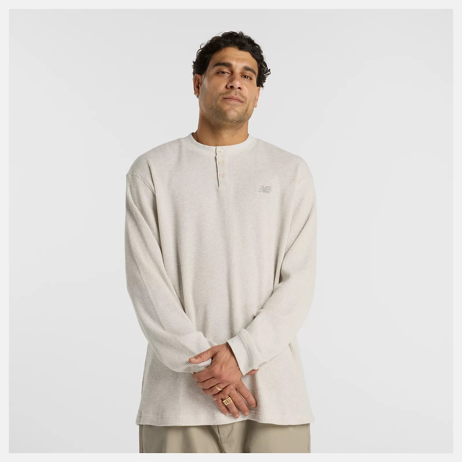 New Balance Numeric Waffle Knit Long Sleeve Henley, oatmeal heather