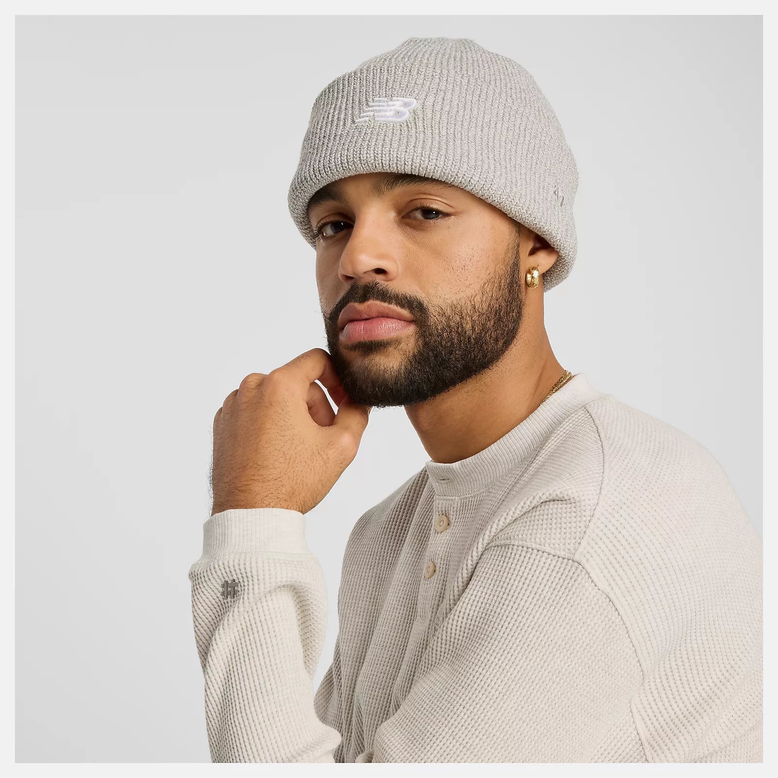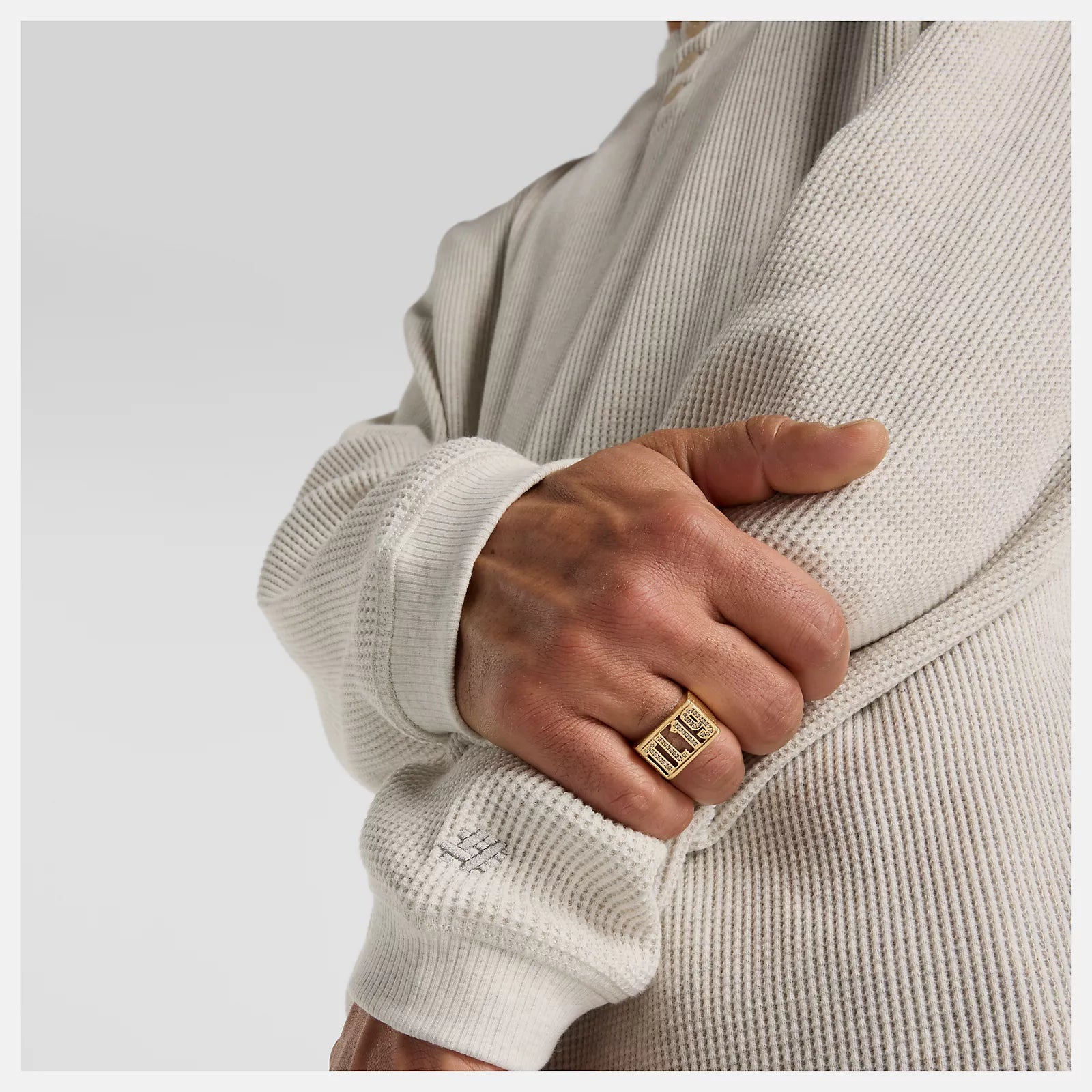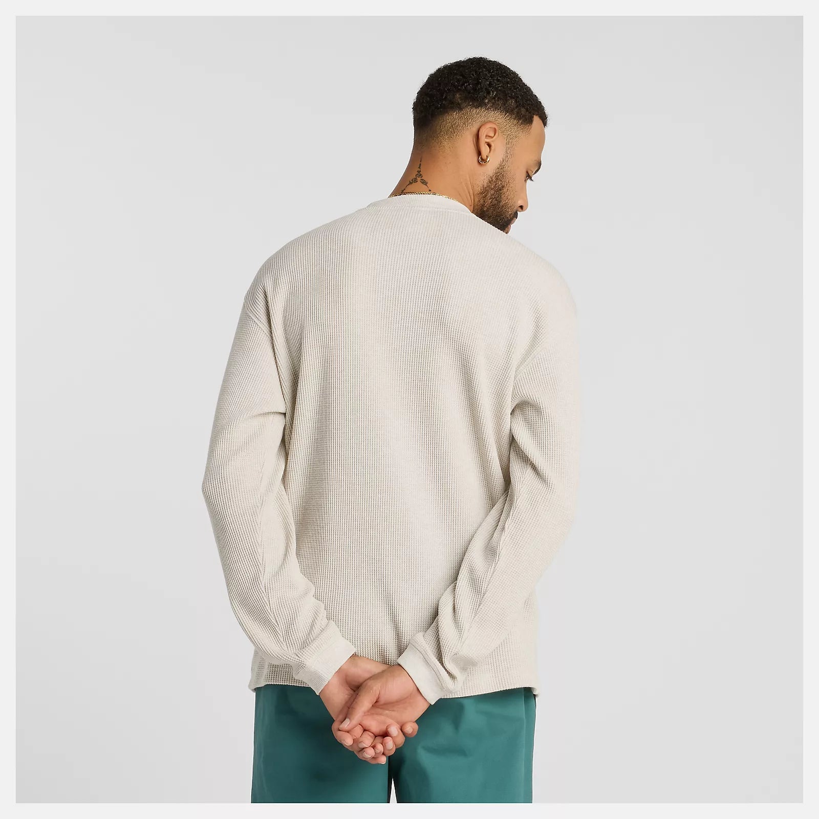 New Balance Numeric Waffle Knit Long Sleeve Henley, oatmeal heather