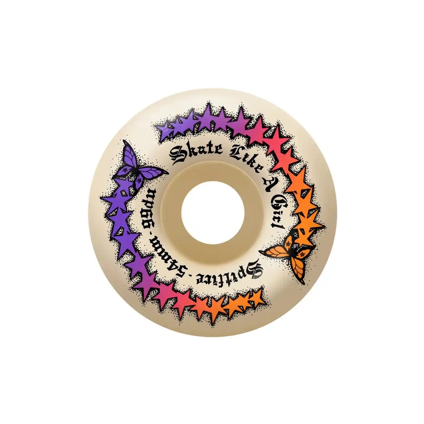 Spitfire F4 99 Skate Like A Girl Evolution Radial Full Wheels. Sold as a set of four. Imported.