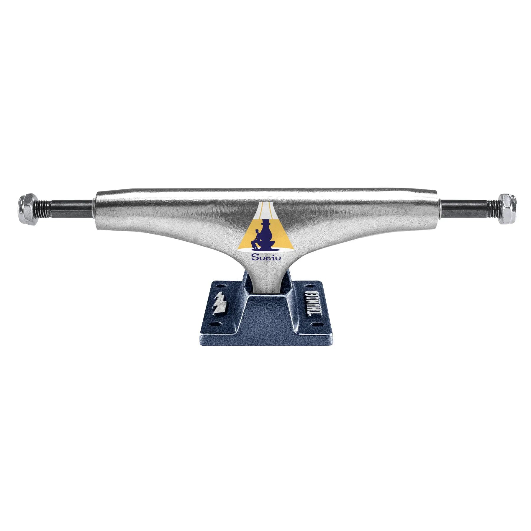 Thunder Suciu Nightwatch Pro Inverted Edition Trucks, polished / blue (148). For skateboards with a width range from 8.125" to 8.375". Sold as a set of two. Imported.
